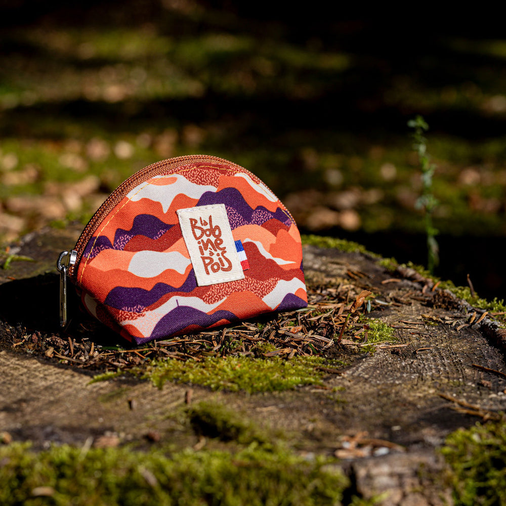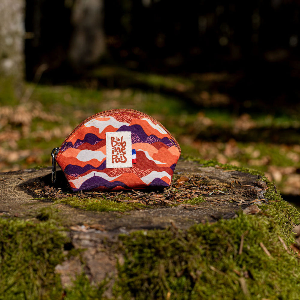 Le tissu à motif du porte-monnaie bourse est imprimé en France et imaginé par Laeticia, fondatrice de la marque.